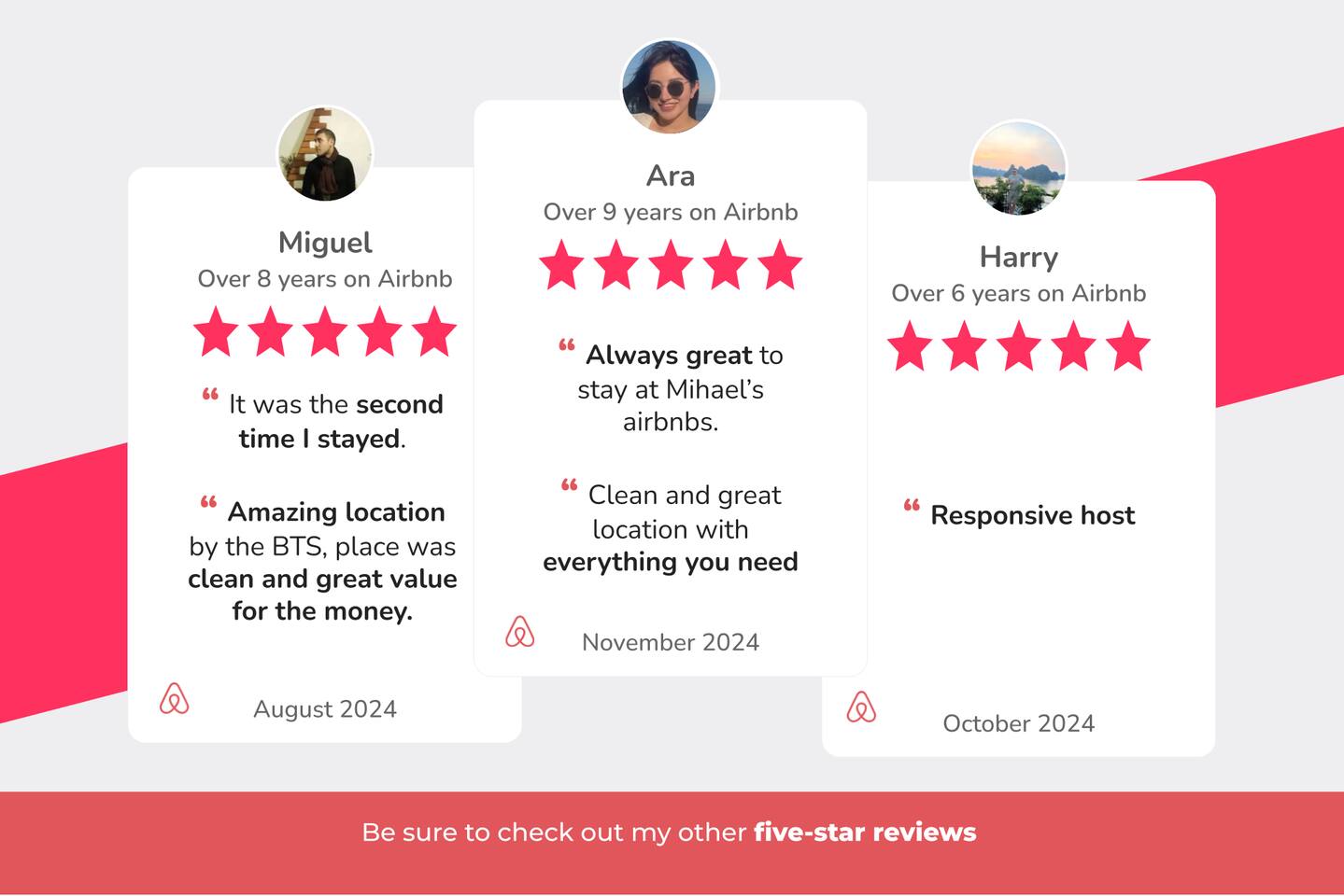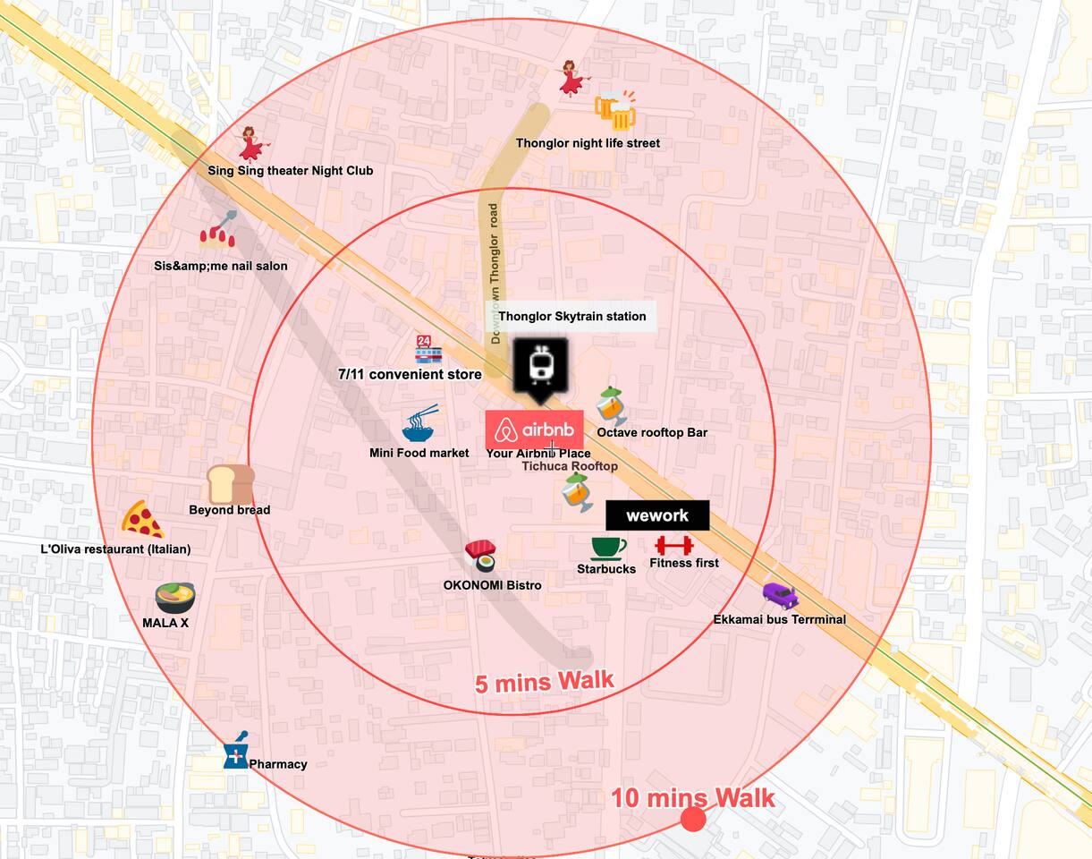 Highlights of Our Space: Prime Location: Steps from Thong Lo BTS station, offering effortless access to Bangkok's vibrant Thonglor area and just one stop from Emporium and EmQuartier malls. Whether you're here for business or leisure, you'll appreciate the quick access to key destinations. Being so close to bustling Sukhumvit road, some noise is reasonable to be expected at rush hours. Explore the trendy Thonglor scene with countless restaurants, bars, and cafes just steps away. Grab a coffee at Toby's, enjoy Japanese brunch at Okonomi, or indulge in delicious street food at Soi 38." Walkable area: ☕ Toby's Bangkok (Cafe and brunch) 🍱 Okonomi (Cafe and Japanese brunch) 🍴 Caffè Olives 🍝 L'Oliva (restaurant) 🍚 Maevaree (best mango sticky rice shop) 🛒 Marche Thonglo (Supermarket and community Malls with lots of restaurants) 🍻 Duke of Beerington (beer shop and bar) 🍣 ITOYA THONGLO (Japanese restaurant) ☕ Starbuck coffee (T-one building) 🍵 Chaen Tea Experience (Japanese matcha cafe) Charming building: Located in a vibrant area, our building has character and is well-maintained. Please note that it is an older building. Note: The space is compact, ideal for those who prioritize location and convenience over large living space. Comfort and Cleanliness: Our rooms are clean and well-maintained, offering a comfortable stay with all the essential amenities. Friendly and Helpful Host: We pride ourselves on providing excellent service, and our friendly host is always ready to help you with any needs during your stay. Guest Reviews: ⭐️⭐️⭐️⭐️⭐️ "Amazing location by the BTS, place was clean and is great value for the money." - Miguel ⭐️⭐️⭐️⭐️⭐️ "Great location, easy to find and get to." - Hanan ⭐️⭐️⭐️⭐️⭐️ "A convenient and clean place to live!" - Mark ⭐️⭐️⭐️⭐️⭐️ "It was a very nice experience. The location is great, everything is convenient. The room was clean and simple, same as the pictures." - Yuanfeng We look forward to hosting you and ensuring you have a memorable stay in Bangkok. Book now to experience the best of what our city has to offer! Check out another room at the same location: airbnb.com/h/sktower2